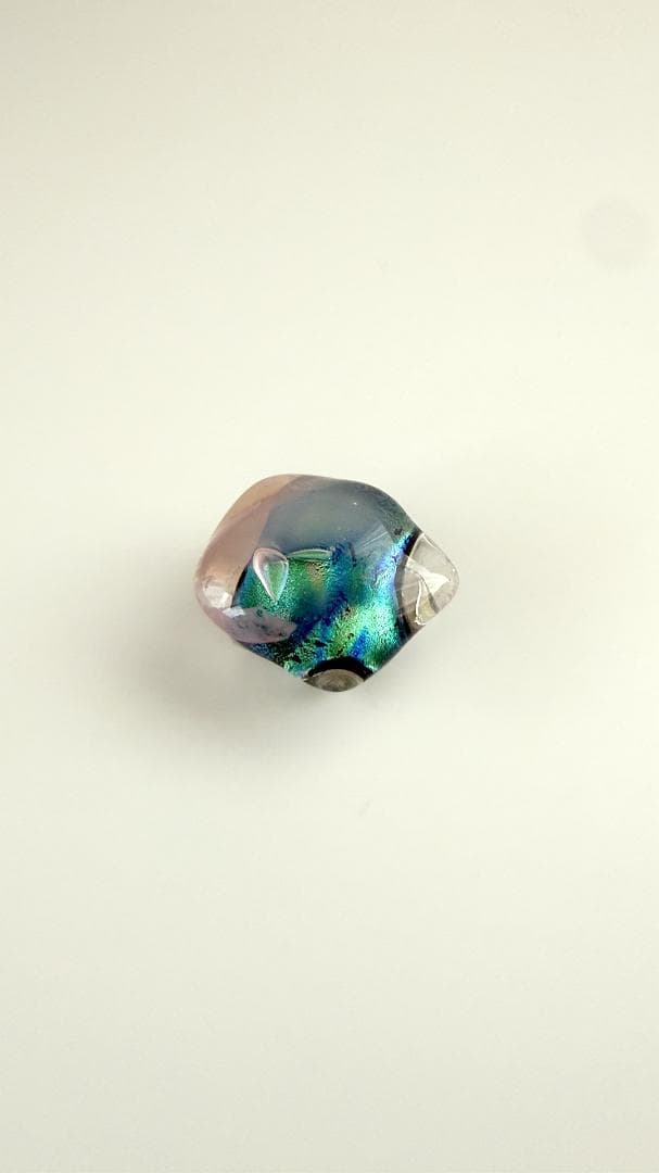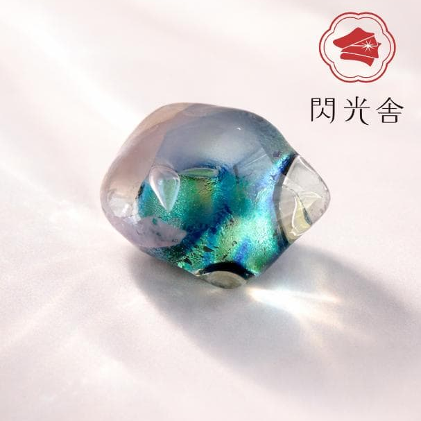 ガラスの帯留め 碧 オーロラ 透明感 氷 雫 着物 2259