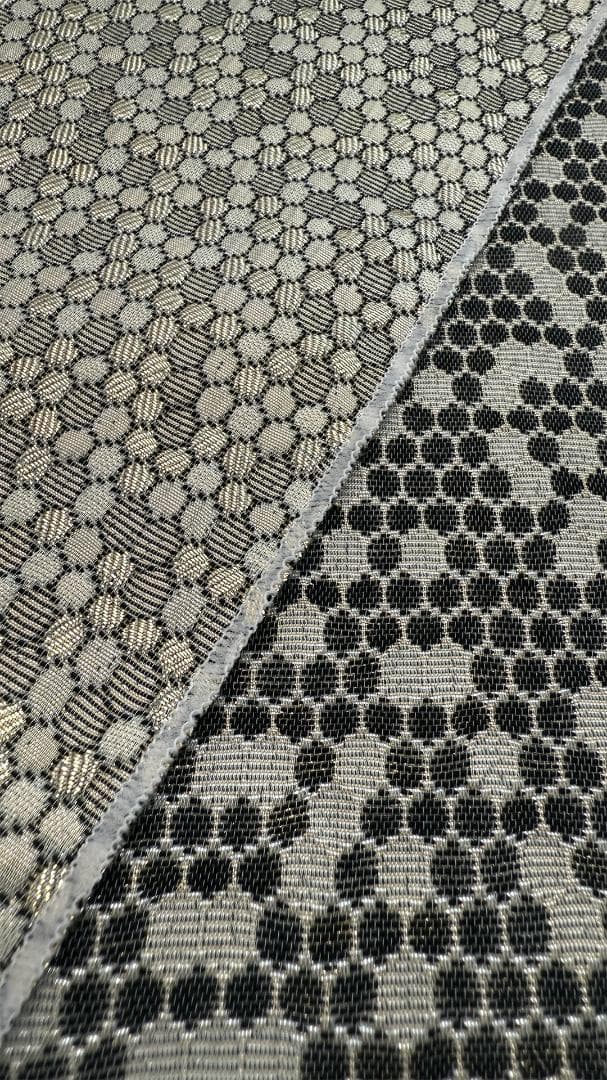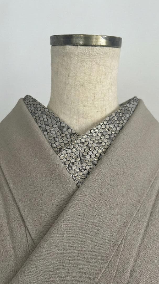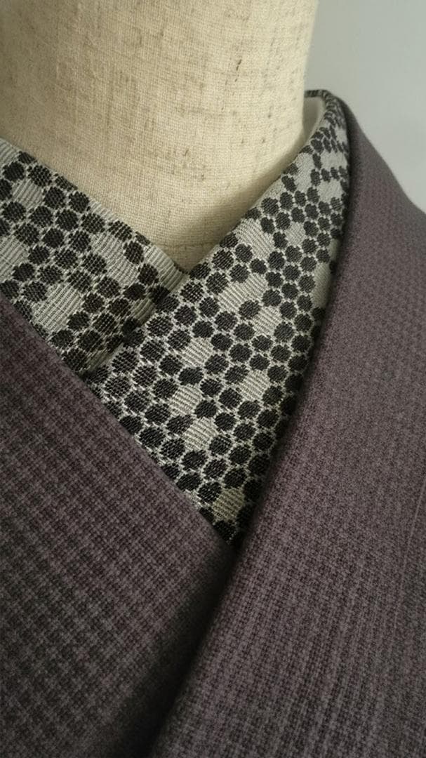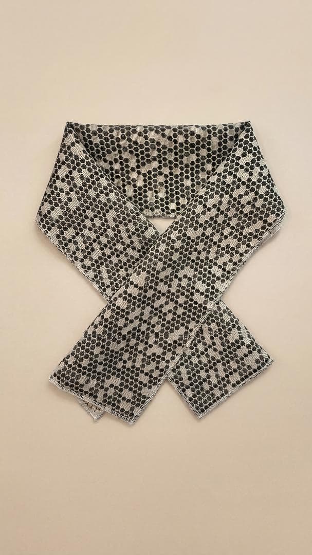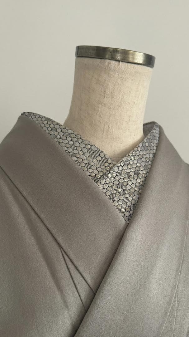 【商品名-2256】 半衿 【ビーハイブ アンティークブラス】 金古美 ハニカム 紋織り モダン ユニセックス リバーシブル 【サイズ・素材】 素材 ポリエステル / レーヨン / ラメ糸(純銀使用) 巾 約 15cm 長さ 約 95cm 【お値引きについて】 複数のご購入で二枚目から200円づつお値引きいたします。 (単品でのお値引きはごめんなさい!) おまとめ希望の際はご購入前にコメントお願いいたします。 ↓出品中の半衿検索 #閃光舎_半衿 #閃光舎 【ご購入の前にプロフィールの閲覧をお願いいたします】 【着用シーン】 カジュアル~セミフォーマルな装いに。 紬、小紋、木綿、ウール、デニム、アンティーク着物、 パーティーでの色無地、訪問着、付下げ、振袖、成人式の前撮りなどにも。 【着用時期】 9月~5月 袷の時期に 【お手入れ】 ご自宅でのお手入れが可能です。 やさしく手洗いしてあげてください。 【商品について】 整然と並ぶ「蜂の巣(ハニカム)」模様を、純銀を使った光沢糸で織り上げました。光の角度で幾何学模様が浮き立つ、奥行きのある表情が魅力です。 「可愛い」モチーフを、クールでハイエンドな質感に落とし込んだ、大人のためのモダンな一枚です。 訪問着や付け下げなどのセミフォーマル〜軽めの礼装(パーティーシーン等)にも、格式張りすぎない抜け感を作れます。(吉祥柄の亀甲柄ですしね!) もちろん、紬や小紋に合わせて、モードな輝きをプラスするのもおすすめです。 裏面は織りの組織が反転し、また異なるマットな表情を見せます。 その日の着物や帯の質感に合わせて使い分けられる、実用的な2way仕様です。 全4色、他のお色もぜひご覧ください。 ※正確なお色を画像でお伝えするのが難しいです。 厳密な色合いを求める方はご遠慮ください。 ※着用のイメージとして、一部AIによる生成画像を掲載しています。 お買い物のヒントにどうぞ。