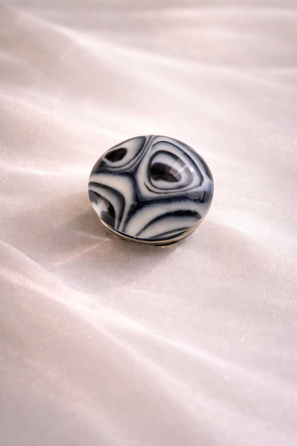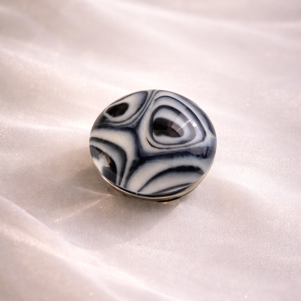 閃光舎 ガラスの帯留め サークル 白 黒 2263