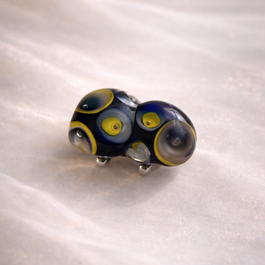閃光舎 ガラスの帯留め 紫 紺 黄色 2268
