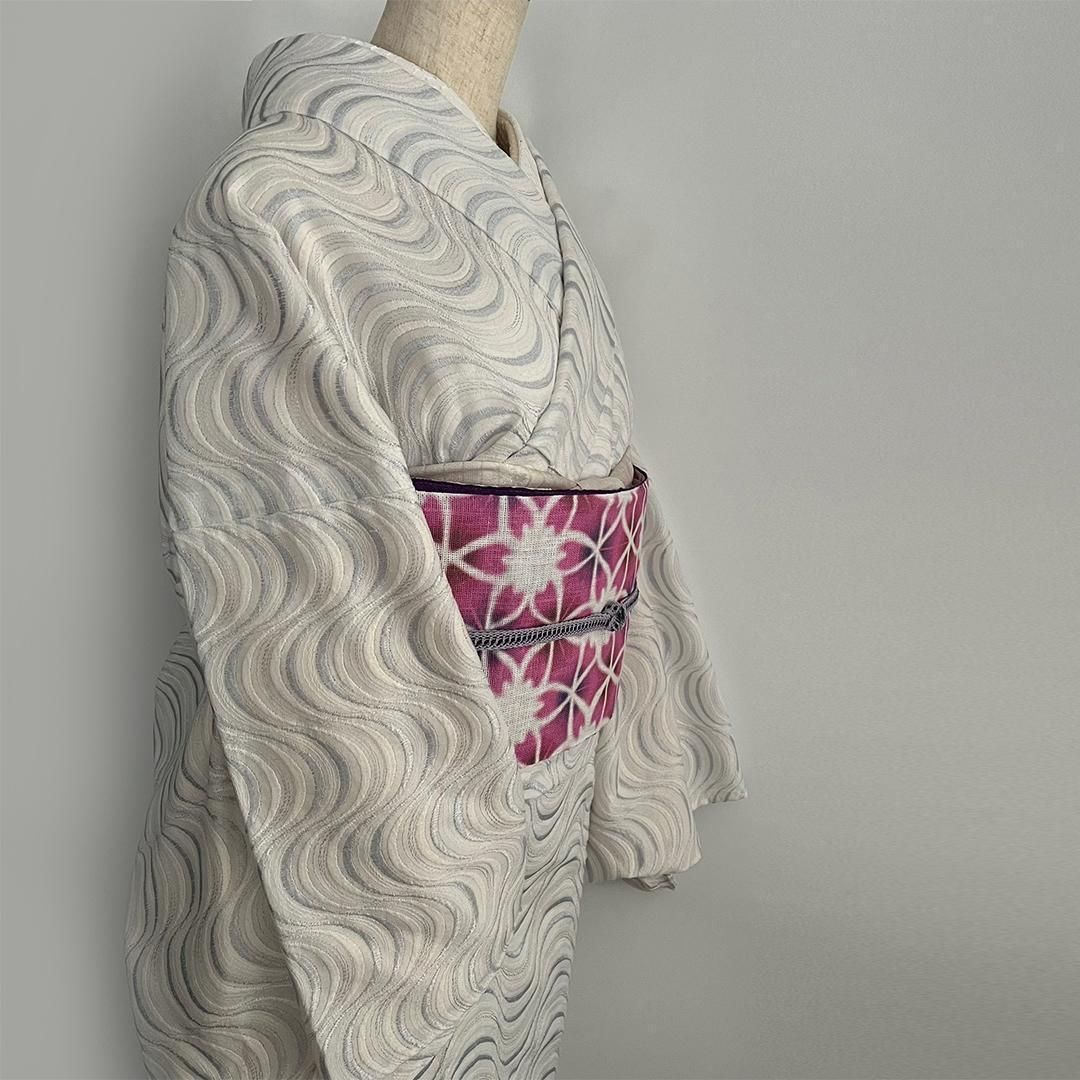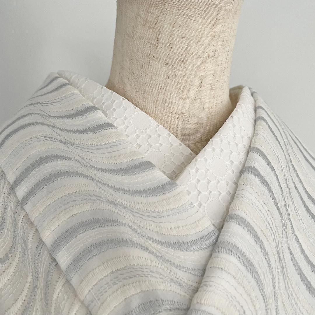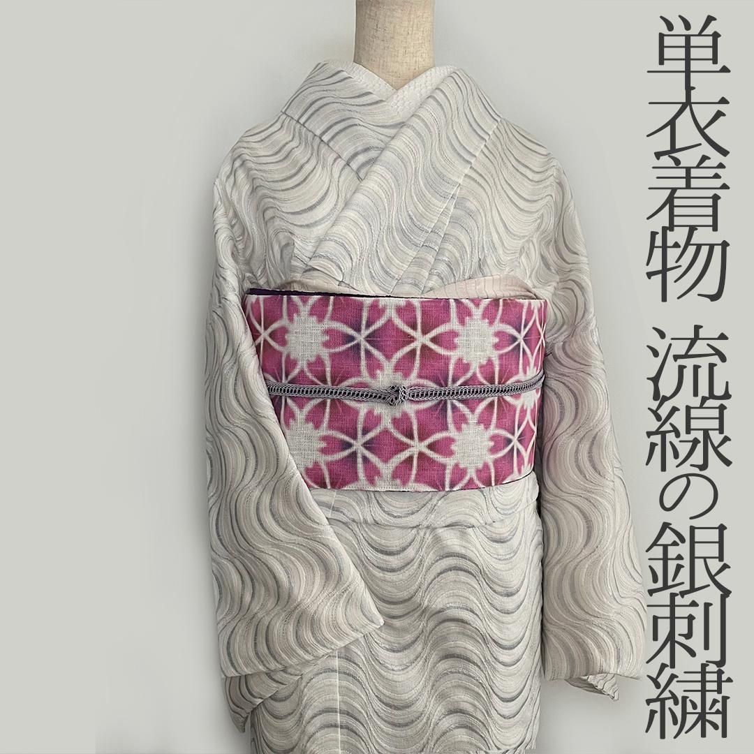 単衣着物 流線の銀刺繍 コットンレース 流水 たてわく 立湧 立涌 きもの