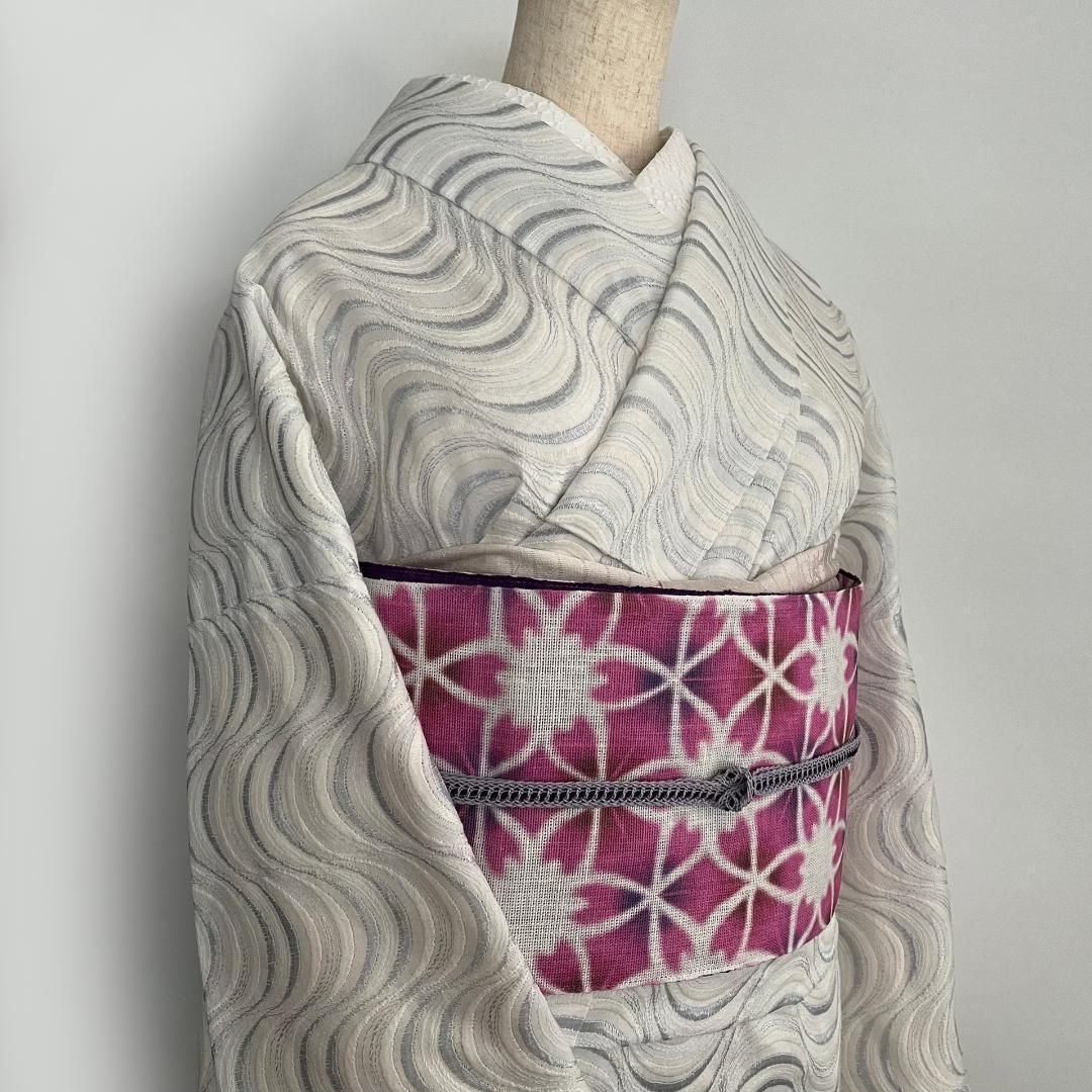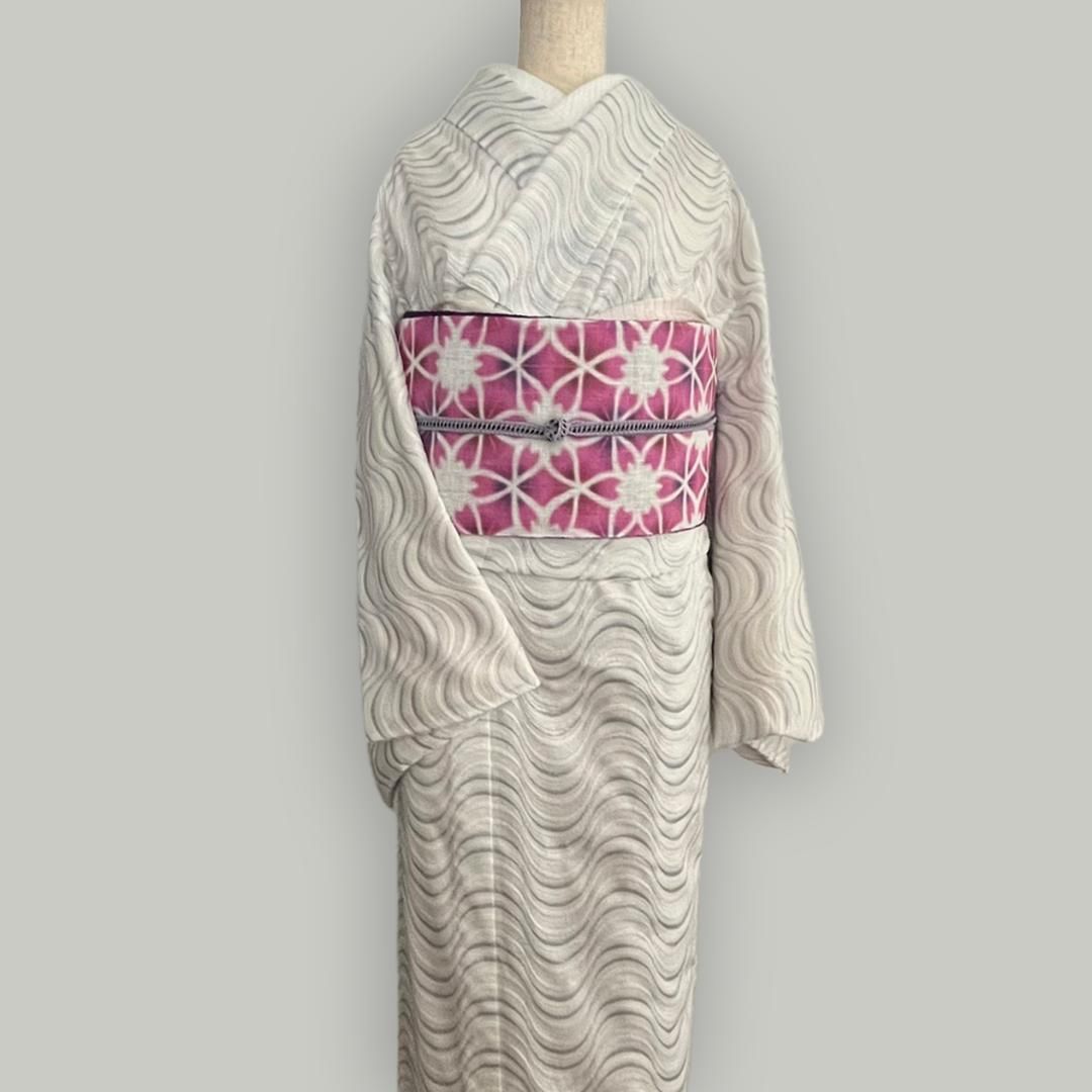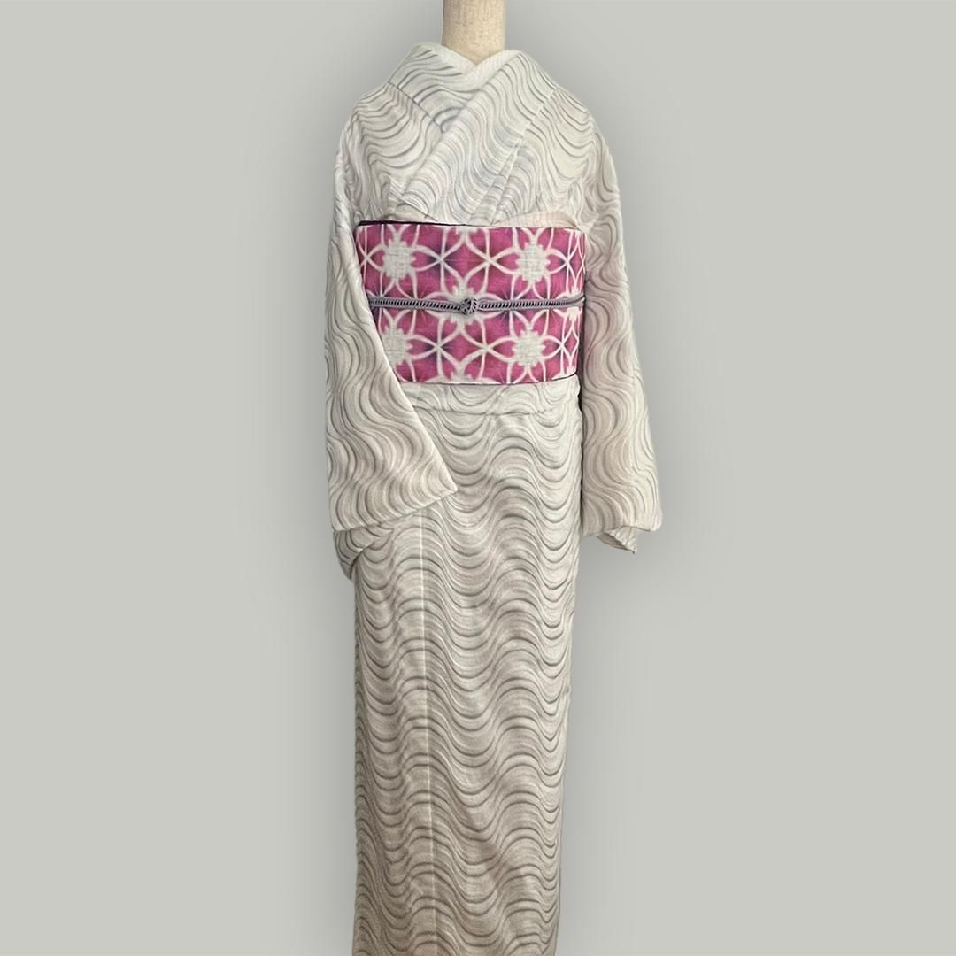 単衣着物 流線の銀刺繍 コットンレース 流水 たてわく 立湧 立涌 きもの