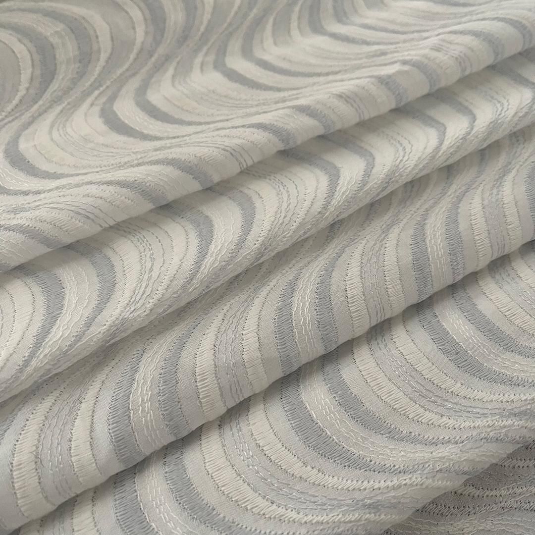 柔らかなオフ白の木綿地に少しだけ青みがかったシルバーグレーの糸とミルキィなオフホワイトの糸で流水柄を刺繍したオリジナルのひとえきものです。