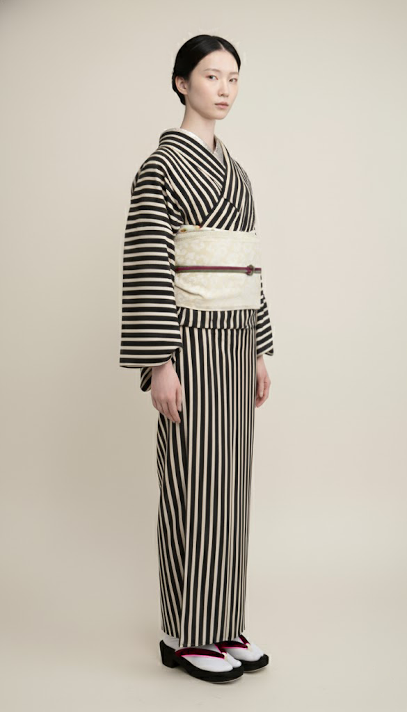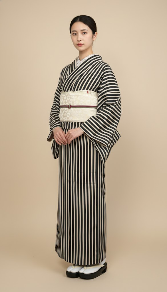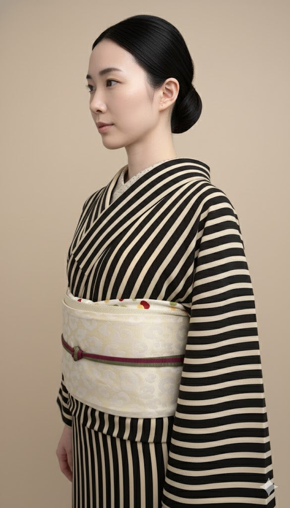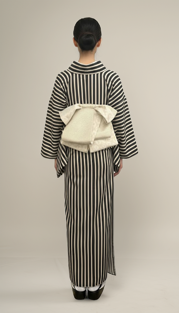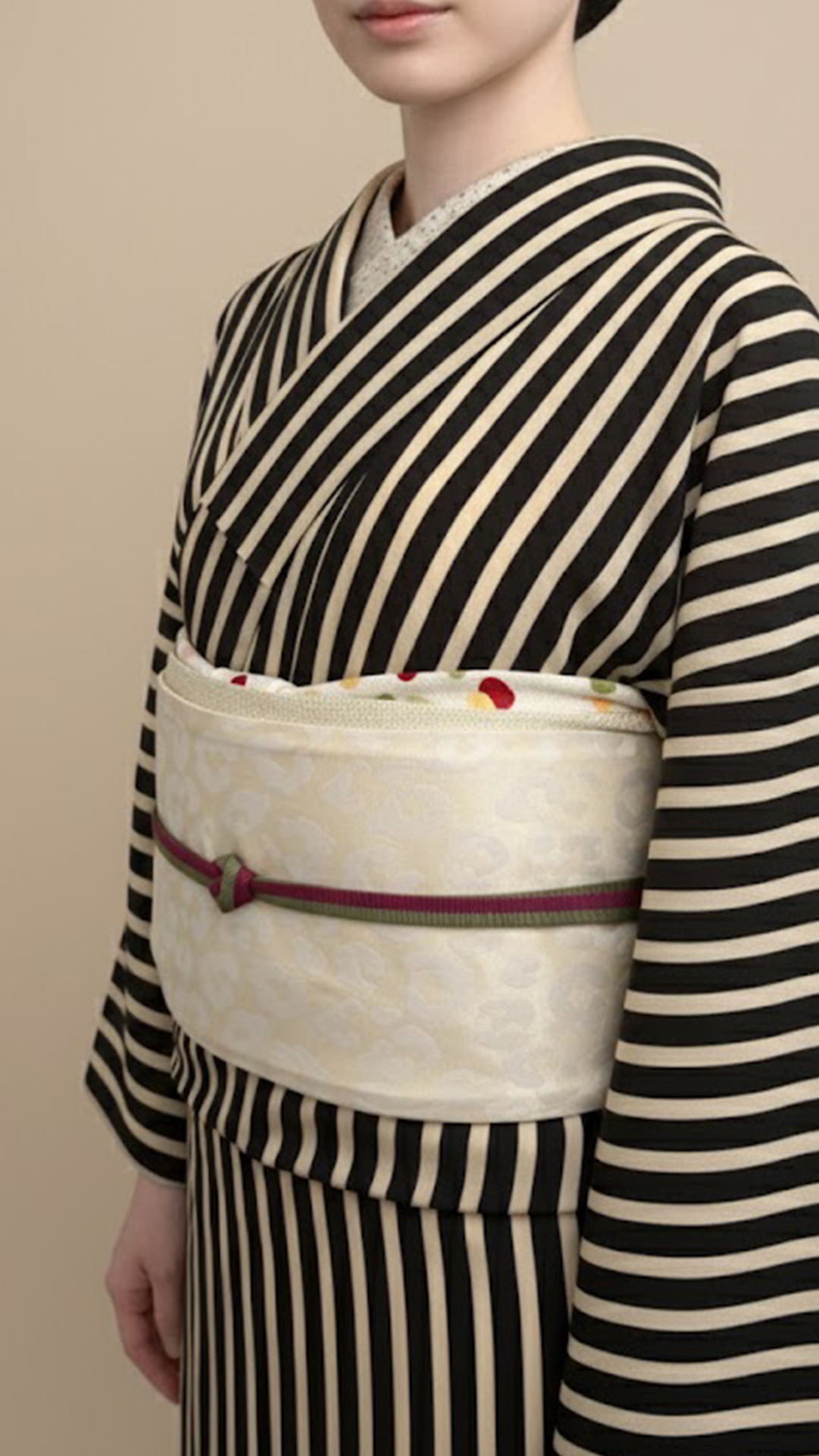 黒や紺、濃色の着物に合わせれば、帯の白さが際立ち、シャープで美しいコントラストを生み出す帯に。