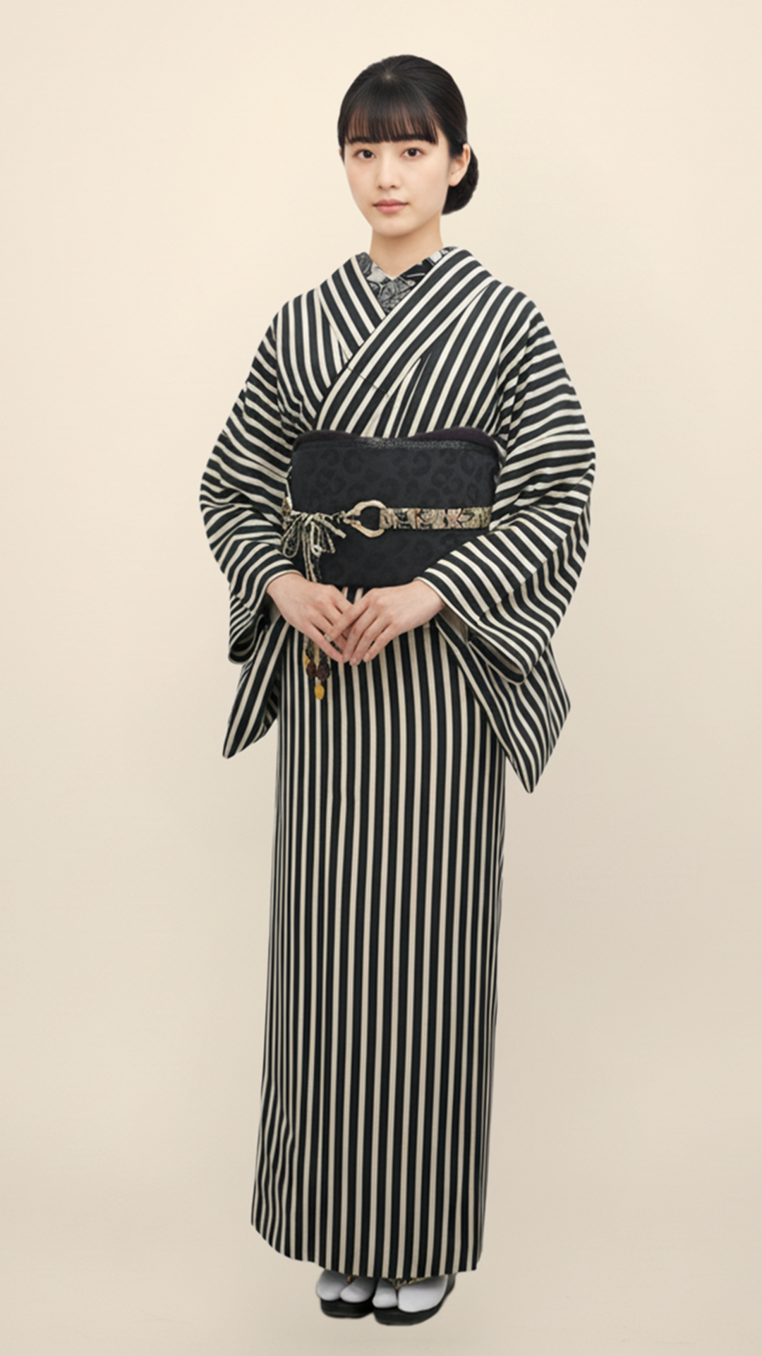 モノトーンの着物(着用画像参照)でモードに決めるもよし。