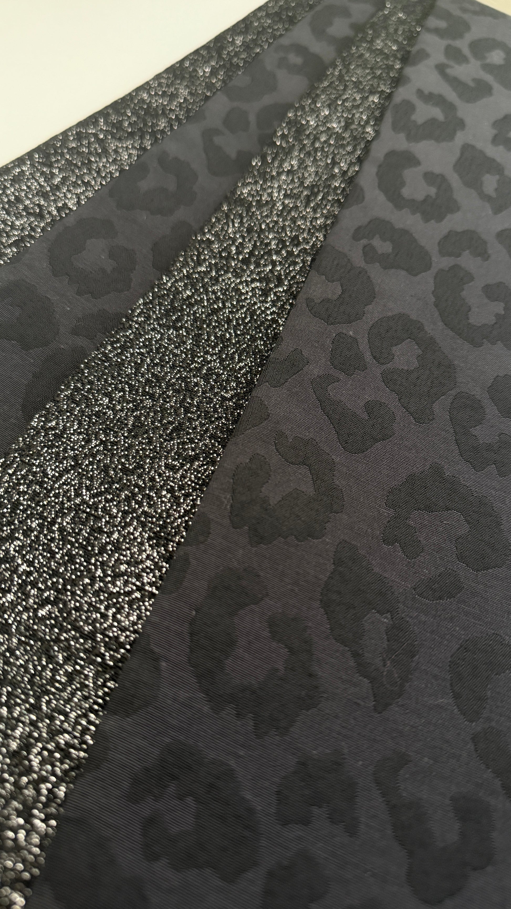 片面は、シックな黒地に浮かび上がる同色のヒョウ柄。
